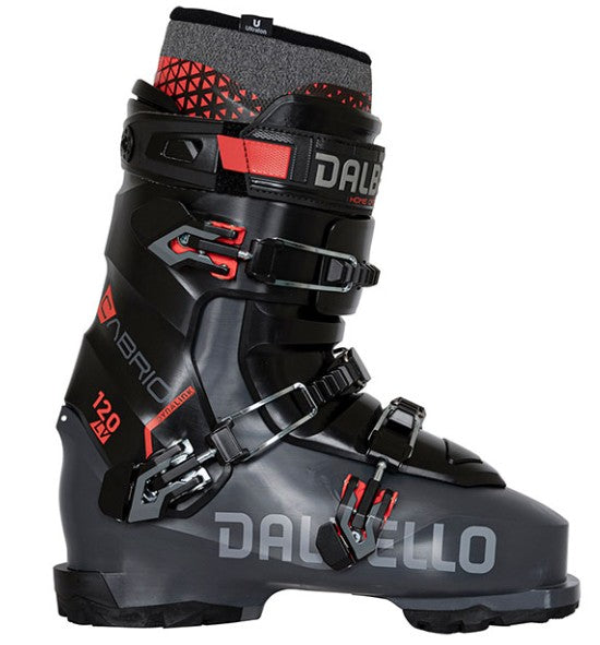 The LV 120 Cabrio with its slightly softer 120 Flex is aimed at advanced freeriders who are looking for impressive downhill performance for their tours in open, irregular terrain, while placing emphasis on easy handling, comfort and sustainability. The boot’s 3 Density Wrap (3DWrap) is designed with Dalbello PuRE (Polyurethane Recycled Enforcement) technology and thanks to the three different layers, it offers more efficient force transmission to the shell, comfort and an excellent fit – perfect for long days skiing. The Dalbello Cabrio platform with its 3-piece design allows progressive, responsive flex, harmonious damping and stable lateral and heel support for greater control during the descent. The ergonomically improved Pebax tongue with its innovative rib shape also makes it easier to get in and out thanks to greater mobility. In addition, handling is made easier thanks to the Dynalock buckle that is part of a locking system, and to a Powerband with quick release function. And the LV 120 Cabrio also scores points for sustainability: The entire inner boot is PVC-free and the outer layer is made of recycled textile and polyurethane.